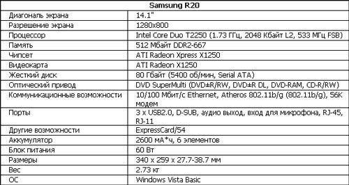 Samsung R20 – это ноутбук из новой серии мобильных ПК, представленной в марте этого года, хотя в Европе он был доступен на несколько недель раньше. Попавшая к нам модель имеет достаточно специфическую конфигурацию. Взглянем на нее более пристально.