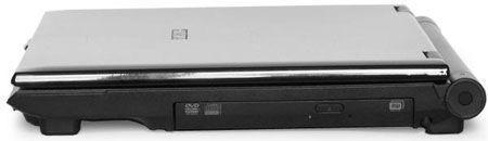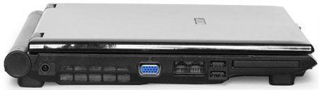 На левую грань вынесены разъем питания, блок вентиляционных отверстий, разъемы RJ-11 и RJ-45, два USB, D-SUB и слот ExpressCard/54.